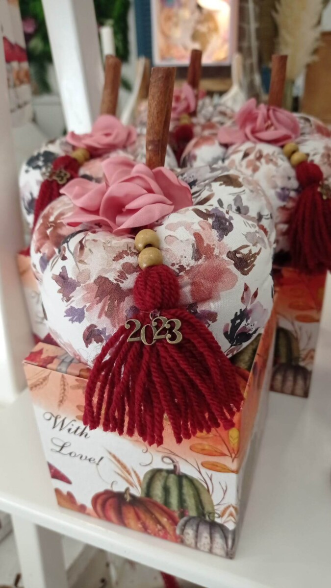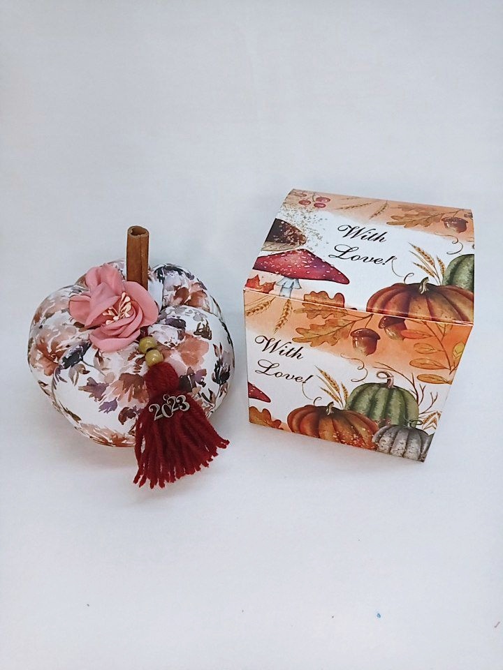 Fabric pumpkin charm in gift box